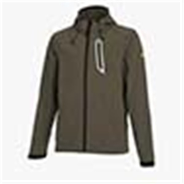 Chaqueta softshell con tres bolsillos frontales con cremallera, uno de ellos en el pecho, detalles reflectantes y capucha regulable. Puños regulables.