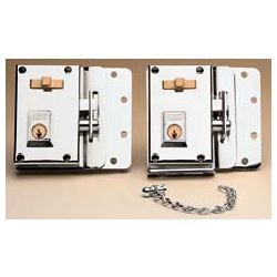 • Cerraduras de sobreponer con sistema antipalanca.• Doble cilindro. • Picaporte con tirador y palanca.