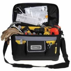 De tapa plana, base de plástico reforzada para mayor durabilidad. Tejido muy resistente 600X600 denier. Esquinas reforzadas para aumentar la solidez de la bolsa. Múltiples compartimentos internos y externos permiten una mejor ordenación. Bolsillo frontal con tapa. Ordenación de documentos. Acceso rápido a las herramientas. Asa ajustabl