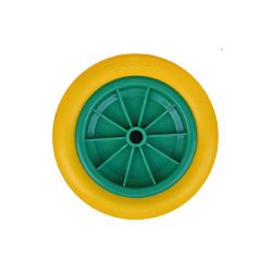 Banda de rodaje 70 mm. Llanta de polipropileno. Neumático de poliuretano con mezcla de polímeros. Ø exterior 260 mm. Ø eje 20 mm. Peso máx. carga 70 kg.