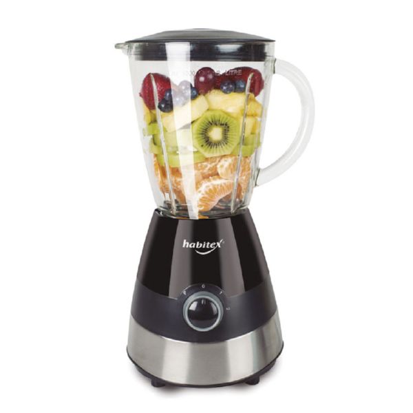 Vaso de cristal 1,5 l. 2 velocidades. Cuchillas acero inoxidable. Función triturahielo. Recogecable. Base antideslizante 500 W.