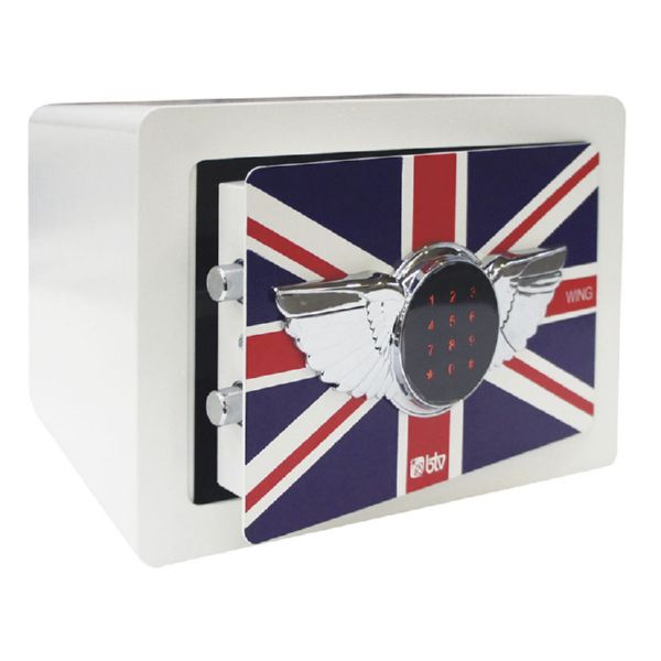 Apertura electrónica. Frente de acero 3 mm y cuerpo 1,5 mm. 2 bulones Ø 20 mm. Luz interior. Cerradrua de emergencia. 35x30xh.25 cm.