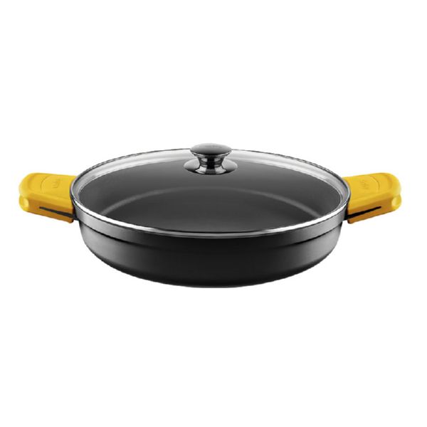 Aluminio fundido indeformable. Recubrimiento antiadherente de alta calidad libre de PFOA. Sartenes con mangos desmontables. Las cacerolas incluyen asas fijas de silicona y tapa de cristal.No apta para inducción. Cacerola baja con tapa Ø 24 cm