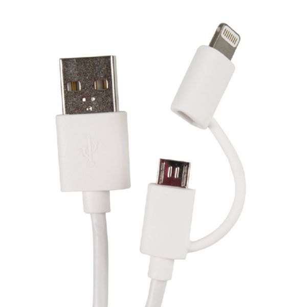 Cable de sincronización y carga para: iPhone 5, iPhone 5c, iPhone 5s, iPhone 6, iPhone 6 Plus, iPhone 6S, iPhone 6S Plus, iPhone SE, iPhone 7, iPhone 7 Plus, iPod touch (5ta generación), iPod touch (6ta generación), iPod nano (7ta generación), iPad ( Blanco + conector Micro USB. Cable 1 m.