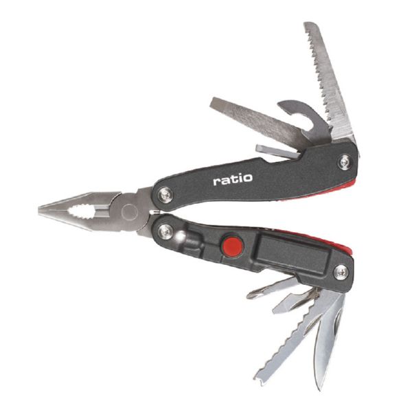 Hoja acero inoxidable. Carcasa nylon. Tamaño cerrado: 103x47x24 mm. Luz LED ø 5 mm. 5 lumen. Tiempo de carga 1 h. Tiempo de descarga 3 h. Batería recargable 3,7V/55 mAh Li-ion. Cable micro USB.Peso: 233 gr. Alicates BL 1 5537H 9,20 Cortador de alambre Cuchillo acero inoxidable Luz LED Puerto de carga micro USB Destornillador boca plana Destornillador Phillips Abridor de botellas Abrelatas Lima de uñas Sierra Raspador de escamas+ regla (al dorso) Pulsador interruptor