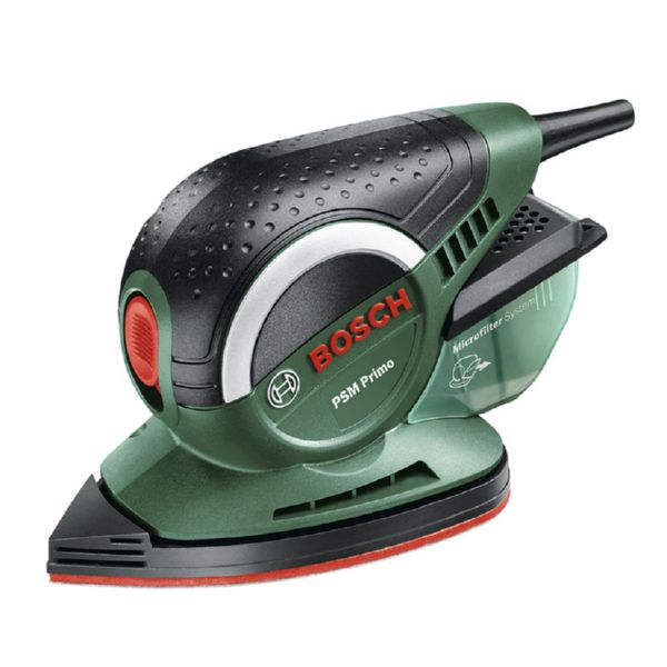 24.000 opm. Órbita 1,4 mm. Lijado 93 cm2. Sistema microfiltro con conexión a aspirador. Peso 0,6 kg. 50 W.