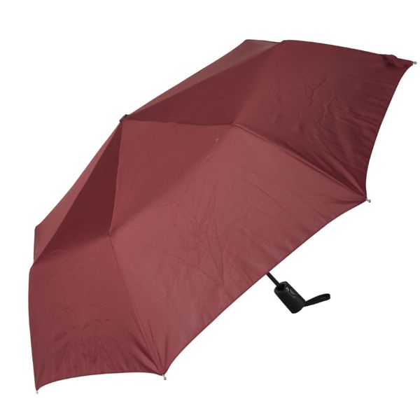Plegable 3 dobleces. Automático, 8 varillas de fibra de vidrio, eje acero. Empuñadura soft touch. 95 cm. Granate