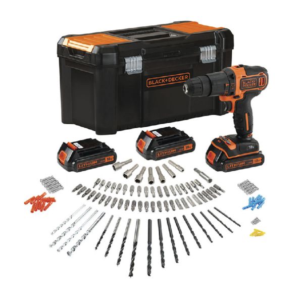 3 baterías Li-ion. 1.5 Ah. Caja de herramientas con 120 accesorios. 18 V