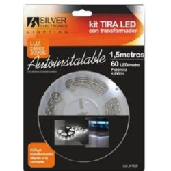 Longitud de la tira: 1,5 m Numero Leds: 60 Leds / m. Con un mayor numero de leds por superficie Led SMD3528 Color: Blanco Tono: 3.000K cálida Potencia: 4,8 W / m Incluye transformador a 12V Alimentación a red 230V AC Grado de estanqueidad: IP20 (Interiores)