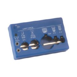 Comprobador de bombillas.Verifica con señal luminosa y auditiva la continuidad del filamento en bombillas de uso más normal (E-10, E-14, E-27, G4, G5, G13, GU53, GY635,...). Incorpora una pila, no siendo necesaria su conexión a la red.