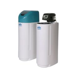 Equipo compacto compuesto por una columna descalcificadora construida en poliéster reforzado con fibra de vidrio y un mueble compacto SNT-10 soplado.