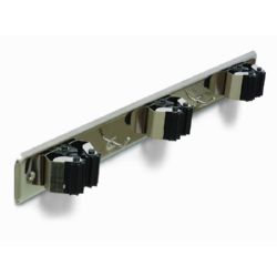Triple cuelga escobas fabricado en Acero Inoxidable o Lacado. Incluye rodillos giratorios