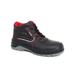 Piel flor vacuno hidrofugada. Plantilla y puntera no metálicas. Suela superior poliuretano expandido y piso de poliuretano compactado con gran absorción de shock. Forro interior High-Dry gran poder de absorción y secado rápido. UNE EN ISO 20345. S3. SRC. Uso: todo tipo de trabajos interior/exterior. Nº 43