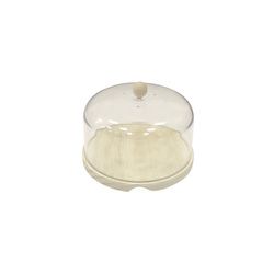 Con tapa acrílica. Base madera. ø 22 cm.