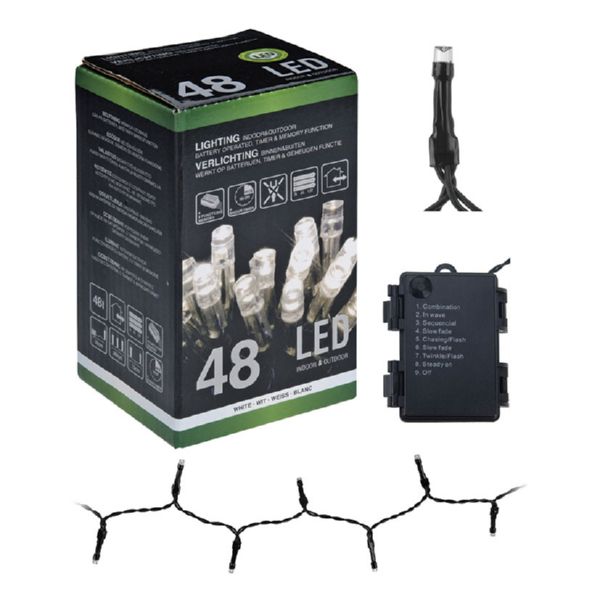 Programador de 8 funciones. Funciona con 3 pilas AA (no incluidas). 48 lámparas. Blanco.