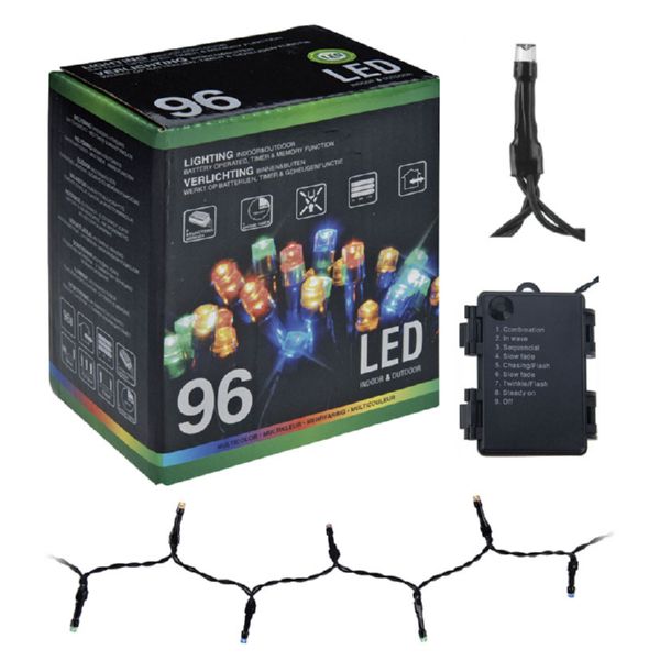 Programador de 8 funciones. Funciona con 3 pilas AA (no incluidas). 96 lámparas. Multicolor.