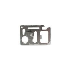 Acero inox. Formato tarjeta de crédito ideal para actividades al aire libre, caza, camping, etc. Funda de transporte. 15 funciones. Dimensiones: 69x45 mm