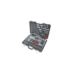Chrome-vanadium. Carraca Locksystem 1/4" -3/8"-1/2". Incluye vasos tipo "E".