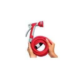 Compacta y ligera, se extiende y se recoge sola. Conectores y pistola multichorro.