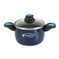 Serie Marina Blue. Acero esmaltado. Recubrimiento antiadherente Teflón. Mango soldado. Tapa de vidrio. Para todo tipo de cocinas. Válida para lavavajillas. Ø 24 cm.