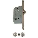 Para puertas correderas. Incluye picaporte + condena. Níquel satinado
