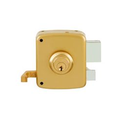 Doble cilindro redondo + 3 llaves. Palanca de acero. Picaporte y tirador interior. Golpe y llave. Esmaltada. Izquierda. 80 mm.