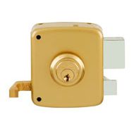Doble cilindro redondo + 3 llaves. Palanca de acero. Picaporte y tirador interior. Golpe y llave. Esmaltada. Izquierda. 100 mm.