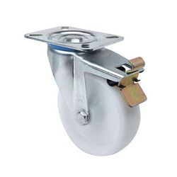 Pletina giratoria con freno. Lateral metálico. Poliamix. Con rodillos en el eje. Ø 80 mm.