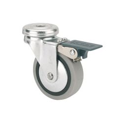 Soporte giratorio con taladro para tornillo con freno. Goma gris. Ø 60 mm. M10
