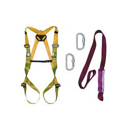 Dos puntos de anclaje dorsal y frontal. Diseño ergonómico de máximo confort. Incluye arnés, cinta de sujeción 0,8 m y 2 mosquetones. EN 361. -