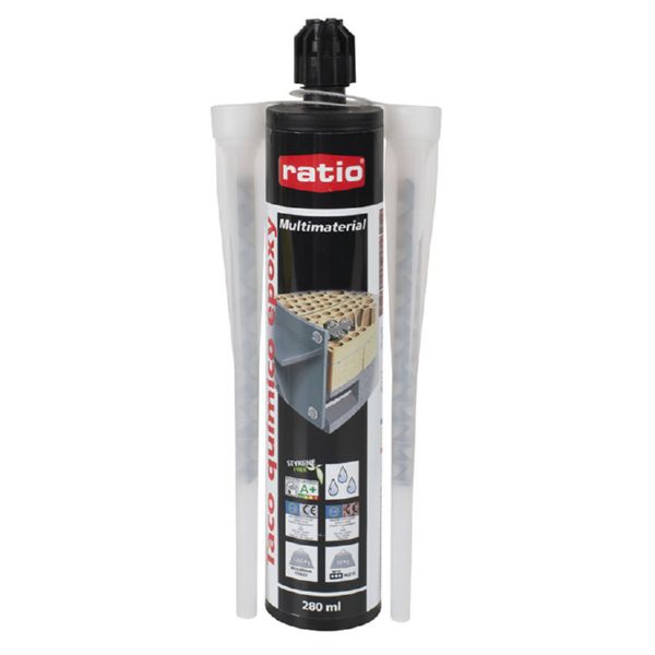 Resina epoxi, sin estireno. Resistencia de hasta 1.280 kg en hormigón no fisurado y 80 kg en ladrillo hueco por punto de anclaje. Fragua en presencia de humedad. Recomendado para aplicaciones en material hueco o macizo. 280 ml.