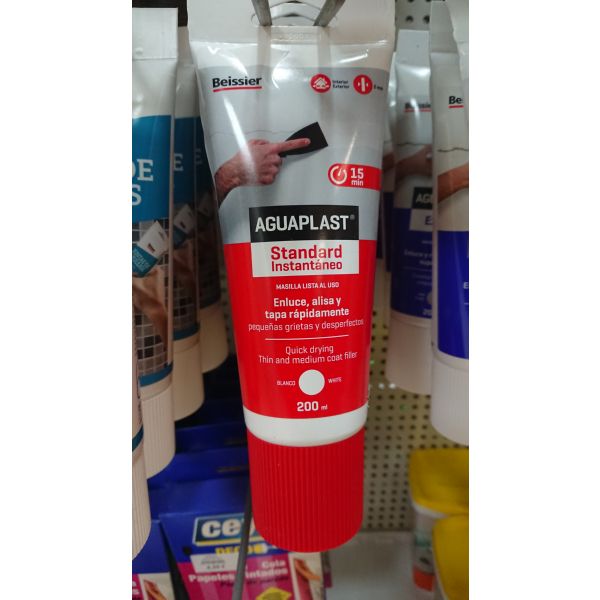 Pasta preparada para interior. Nivelador y tapagrietas. Acabado muy liso y duro. Usos: alisar y teneder superficies texturadas, parchear defectos superficiales sobre cemento, piedra, yeso o madera. Tubo 200 ml.