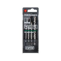 4 brocas. Ø 4-5-6-8 mm. Punta Metal Duro 1ª calidad. Materiales gran dureza: Porcelánico, teja, piedra, granito, pizarra. Materiales dureza media: Cemento, terrazo, mármol, terracota.