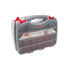 Doble cuerpo. Asa ergonómica. Tabiques modulares. Hueco para candado. 32 x 26,5 x 8 cm. 24 tabiques.
