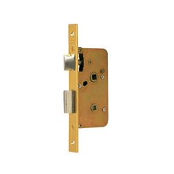 Golpe y cerrojillo pasador, reversible. Entrada 45 mm. Frente latonado