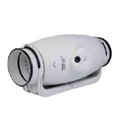 Ventilador de bajo perfil, muy silencioso, fabricado en plástico, con recubrimiento interno que direcciona las ondas sonoras y aislamiento fonoabsorbente, ( excepto TD-160 SILENT) juntas de goma en impulsión y descarga para absorber las vibraciones , cuerpomotor desmontable sin necesidad de tocar los conductos, caja bornes orientable 360º , motor regulable 230v - 50hz , de 2 velocidades, Clase B , IP44, protector térmico. CARACTERISTICAS: velocidad (rpm) 250; potencia max absorbida: 25w ; caudal en desc.libre 180m3/h ; conducto (mm) 100