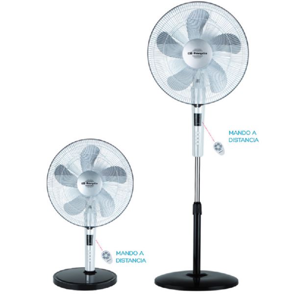 Ventilador de pie 2 en 1, sobremesa y de pie Tamaño de aspas 40 cm 3 velocidades de ventilación 3 modos: normal, brisa y noche Mando a distancia Potencia 65 W Programable 7.5 horas Oscilación 90º Asa para transporte Pilotos luminosos indicadores Regulable en altura (138cm max.) e inclinación Muy silencioso Tensión 230 V~50 Hz
