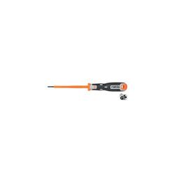 Mango trimaterial antideslizante. Varillas acero molibdeno-vanadio 60 HRc aislada para trabajos en baja tensión hasta 1000 V. Control de tensión unitario con carga de 10.000 V. Fabricación nacional según norma IEC 60900. Juego 5 destornilladores. Recta: 3x100 mm, 4x100mm. Phillips: 0x100 mm, 1x150 mm, 2x175 mm.