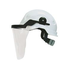 Casco Alborán Avante con arnés y volante de ajuste. Bloqueo de seguridad. Visor de policarbonato. Norma EN 397, EN 167, EN 168. Blanco