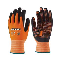 Nilón sin costuras con recubrimiento de nitrilo foam y dots de nitrilo en palma. Excelente ergonomía y agarre. Uso: sector automoción, mecánios, industria del cartonaje, ensamblajes y otros similares. Talla 8