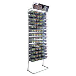 Incluye 12 unidades de cada una de las 140 referencias de la gama. (Expositor gratuito). Alto: 220 cm. Ancho 70,5 cm. Fondo: 49cm.