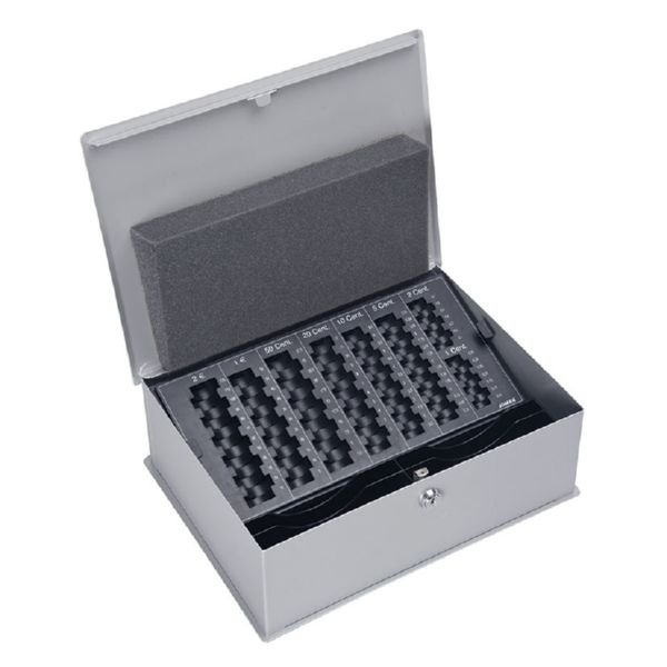 Acero pintado antihuellas. Bandeja portamonedas interior y cajón guardabilletes vertical. Gris plata. 35x26xh.12 cm.