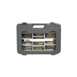 Maletín 1.700 piezas surtidas. Cabeza plana. Cincado composición: 3,0 x 16 mm. 350 unidades 3,0 x 20 mm. 300 unidades 3,5 x 25 mm. 200 unidades 3,5 x 30 mm. 150 unidades 4,0 x 30 mm. 150 unidades 4,0 x 35 mm. 120 unidades 4,5 x 40 mm. 80 unidades 4,5 x 50 mm. 70 unidades 5,0 x 40 mm. 70 unidades 5,0 x 50 mm. 60 unidades 5,0 x 60 mm. 50 unidades