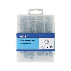 DIN 934. Cincadas. Surtido 115 unidades. Sistema de apertura y cierre. Composición: M3 40 unid. M4 30 unid. M5 20 unid. M6 12 unid. M8 8 unid. M10 5 unid.
