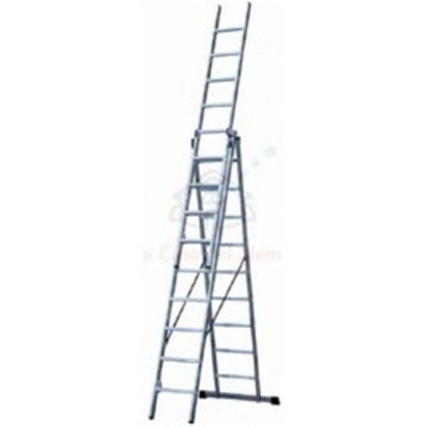 Barra establizadora, conteras PVC. Guías exteriores de deslizamiento en aluminio. Cinta de seguridad antiapertuta nilón. 3x9 peldaños.