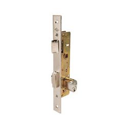 Golpe y llave. Cilindro ovalado con vástagos, reversible (la llave acciona el golpe). Frente niquelado. Entrada 20 mm.