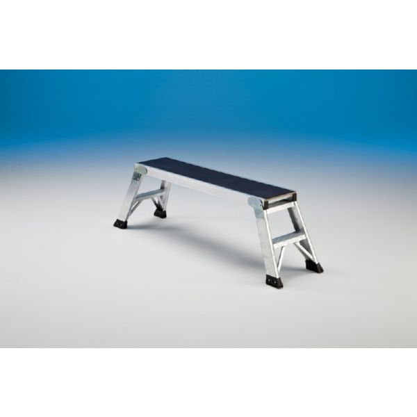 Plataforma de trabajo de dos subidas y superficie de madera antideslizante Taburete de uso profesional fabricado en aluminio nervado. Los peldaños están soldados a los montantes dando lugar a una estructura muy sólida y resistente.