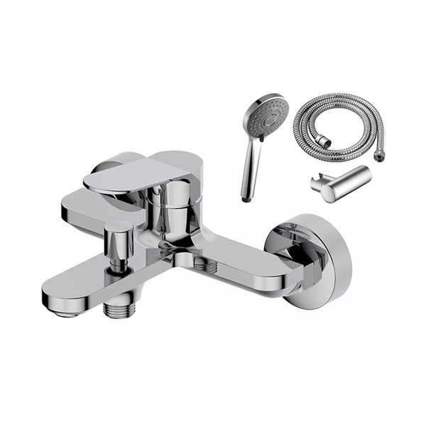 Latón cromado. Cartucho cerámico ø 30 mm. Baño-ducha. Flexo y mango ducha.