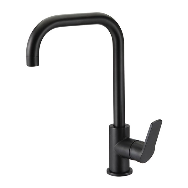 Negro mate. Caño doble ángulo. Cartucho cerámico ø 35 mm. Flexible 400 mm. Cocina-repisa.
