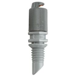 Con la tobera pulverizadora 180º GARDENA, como parte del sistema Micro Drip GARDENA, es posible regar arriates completos con una pulverización fina. El alcance de la tobera pulverizadora es de unos 3 metros. Se puede prolongar con el tubo prolongador (nº art. 1377-20). El alcance también puede ajustarse usando la válvula reguladora (nº art. 1374-20). La tobera pulverizadora abarca 180° a su alrededor. Se incluyen cinco toberas pulverizadoras.